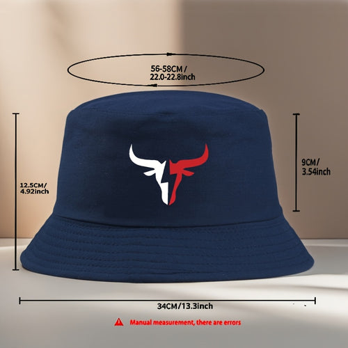 1pc Elegant Cotton Blend Bucket Hat with Bull Logo Print, Reversible Outdoor Casual Cap, Gift for Dad